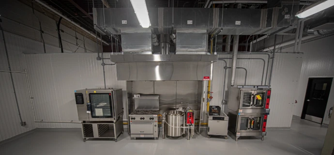 The Grove provides us with a fully outfitted, shared-use commercial kitchen, with dedicated equipment including a steam kettle, a burner range with oven, a 20-quart mixer, and a cutter mixer – all essential for the precise and consistent production of our sausages.